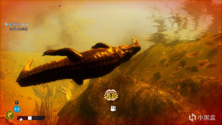 还有的就是频繁的卡顿和闪退,不同区域间的读取载入就有概率触发闪退,到了新区域卡顿那也是常有的事,不如好在有自动存档功能。不过最让人无奈的还是遇到顶级掠食者时大概率闪退,个人最开始遇到掠食者好像是短嘴鳄,它咬上一口直接把游戏给咬崩溃闪退了。不仅是闪退,如果玩家在遇到顶级掠食者前时控制鲨鱼浮出水面游行,那么会一直卡在特写画面,等待许久也不见切换至游玩视角,需要退回主菜单再重新从洞里出发前进至顶级掠食者处,很是浪费时间。