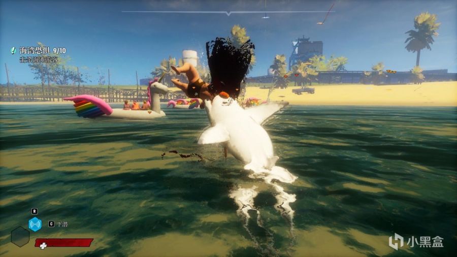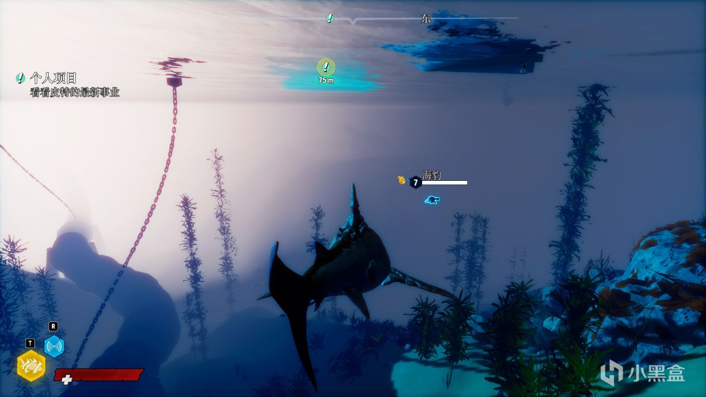 此外最让人难受的就是这个锁定系统和蹩脚的视角,引导中说的是“按F有限锁定掠食者以及猎人”,那为啥按了F锁定之后游两下转个身锁定就消失了?视角锁定不就是应该在索敌范围内把视角牢牢地定在被锁定的敌人身上吗?为啥就转个身的功夫锁定就没了?并且这个视角问题也很大,只要玩家一靠近水面就会自动上浮变成"背鳍突进"模式,也就是露个背鳍在水面上前进,在战斗过程中时不时就因为这样视角的突然转变导致丢失目标而被敌人打上一套,而且要在是诸如海滩等浅水场地,被敌人一攻击直接击飞然后直接浮顶变成水面模式然后平白无故被a一套,实在烦人。