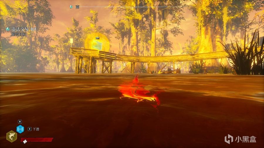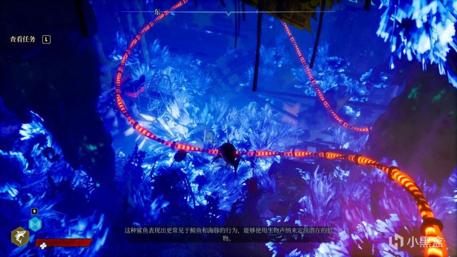 先说说探索部分,其实个人认为本作蛮有做成步行模拟器的潜质的,整个游玩过程也基本上就是个观光过程,只是从陆地转移到了水中,当然玩家也可以控制鲨鱼冲上岸探索。主线目的性不大,不像是现在市面上不少沙盒游戏那样探索与主线绑定,可以说《食人鲨》的主线跟支线对于探索的束缚相当少,流程的推进更多的是靠"顶级掠食者"跟"恶名"这俩系统实现的。任务的存在就是为了解锁下一个任务,玩家要做的便是不停地咬、杀、破坏,然后观光欣赏不同于陆地的海洋美景。
