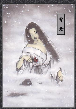其中一个很著名的故事是两个樵夫上雪山打柴,然后在一个荒废的小屋遇见了雪女,雪女冻死了老的,然后可能看小的英俊,就说:你要对此事保密,不然我不会放过你的!小樵夫磕头如捣蒜,下山回家改行换业,几年后有一个女子投奔到他家,从开始的做牛做马到做。。。做女主人,小樵夫对多年前的噩梦难以忘怀,一次办完事后本着在女人面前吹牛逼的天性说了这事,女主人瞬间变成那个雪女说:我让你不要告诉别人的!看在我们孩子份上,我就不杀你了,你好自为之!然后就离开了。