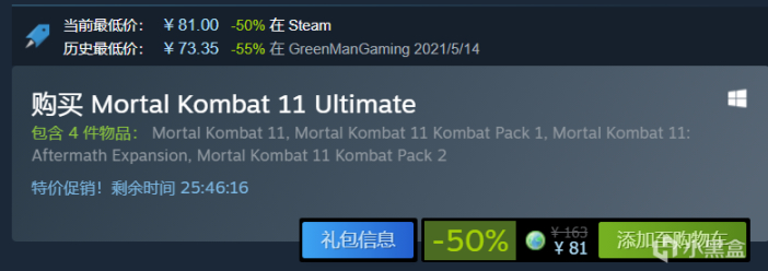 多人暴力动作格斗游戏——《真人快打11 终极版》 ¥163→¥81(非史低)