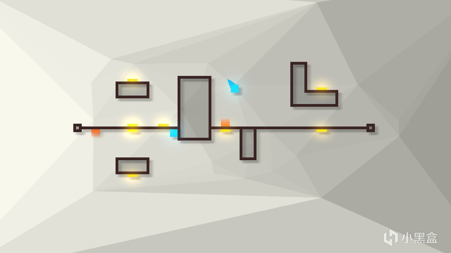 玩法简单,跟《与己同行》玩法很像,基于物理的拼图平台,同时控制两个方向相反的正方形左右移动。两个方格都不受控制的跳跃,但是它们可以通过公共表面交换动量。
