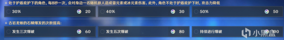 因为「原岩喷吐」这个技能的存在,在打古岩龙蜥的时候护盾角色会起到非常大的作用,而且还有保护c位的作用。钟离,诺艾尔二选一必带。