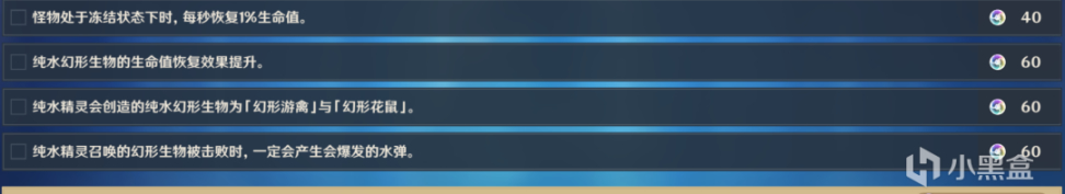 这四条词缀全是加强二阶段的纯水生物的。其中冻结状态下回复生命值与生命值恢复效果提升若练度不够则不建议与冷却时间加长词缀同选。