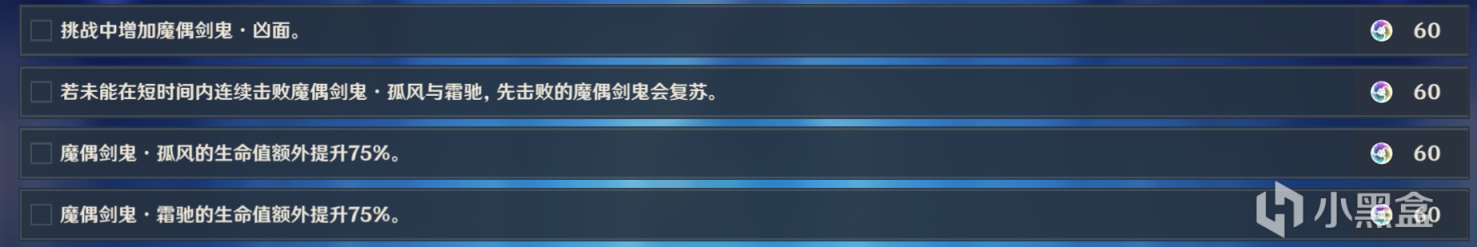 关卡的两个敌人攻击欲望和伤害都很高,就连钟离的盾也不能护人万全,需要熟悉敌人技能机制并且善用无敌帧才能比较好的躲避。此外「孤风」的攻击以远距离攻击为主;「霜驰」的攻击以近距离攻击为主,且会主动突进到我方身边进行攻击。在实战中我们可以躲过风刃后靠近「孤风」,而「霜驰」不久也会靠过来聚到一起。