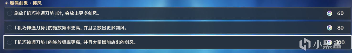 加强「孤风」的剑气斩,至多一次释放六道剑气,不易在远处闪躲。不建议远程输出多的玩家选择。
