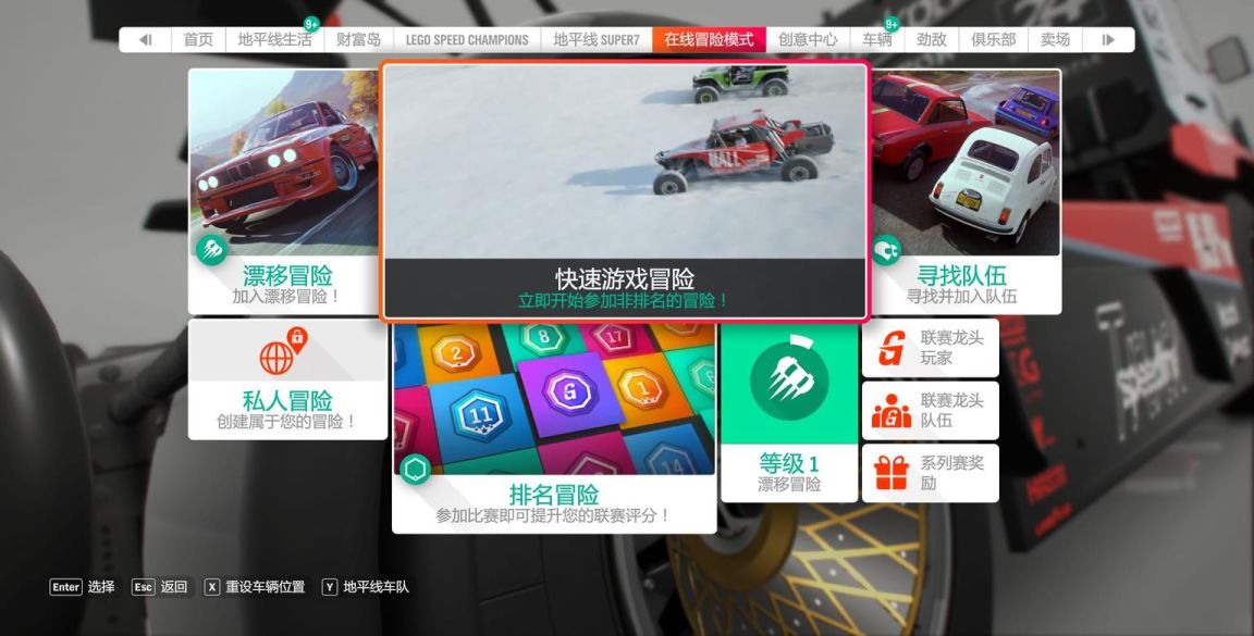 你可以马上领取已经拥有的车辆,获取大量经验,快速离开(文章末尾会介绍如何领取);也可以顺着指引去完成比赛、故事章节及特技挑战,打好基础再离开新手村。