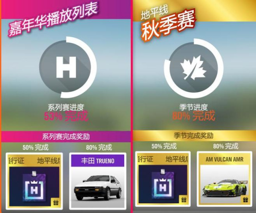 注:如果你是秋季才开始玩季节赛,那么需要把秋、冬、春三个季节的进度均完成至100%,才能获得系列赛进度80%的奖励 - AE86了。(最多允许漏掉一个每日任务)