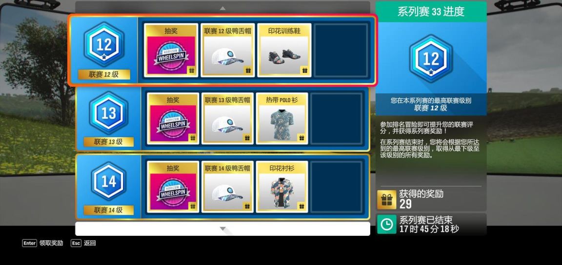 当你发现自己的赛事、奖励与社区的显示不一致时,不用怀疑,你需要更新游戏了。详情可以点自己的购买平台,例如STEAM或者微软商店,等待更新包推送。完成更新即可跟上社区进度。
