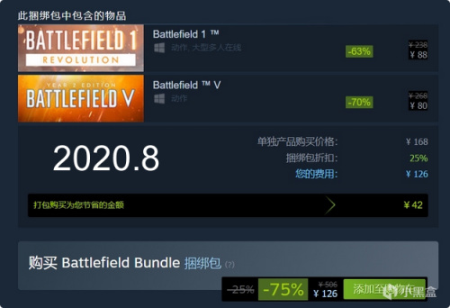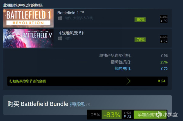 Tip:如果你的steam库已经拥有战地1或者战地5,那么同样是去买同捆,这样同捆价格会减去拥有的游戏的价格。