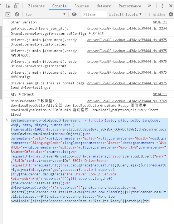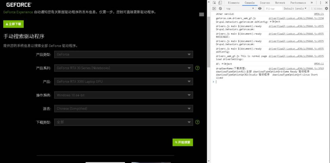 3.由于NVIDIA官网默认显卡驱动只显示10个,所以我们可以通过控制台调出剩余的100个显卡驱动