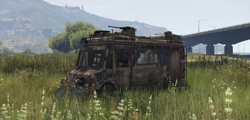 破铜烂铁堆在一起的厢型车,浑身上下补上的钢板,但却没有一点的防御作用,一发导弹就能带走,枪类的防御力也和普通厢型车不相上下。武装只有顶上的一把机枪,并且无法进行改装。