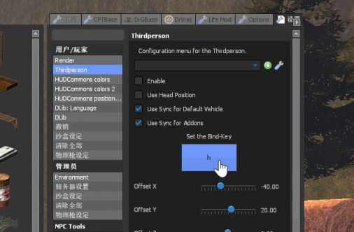 Q键右侧上方选择“设置”然后-“用户/玩家”-“Thirdperson”在我鼠标位置进行按键预设,我设的是h。