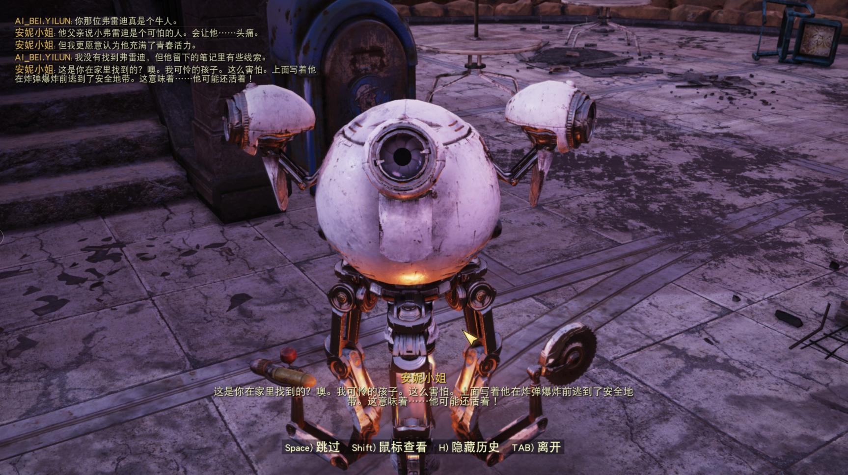 在地表的屋顶裂缝处跳下,便可发现水闸的位置,紧接着会收到其他电波信号,寻声而去,我们找到了水上乐园的负责人——安妮小姐。(一个眼球机器人)