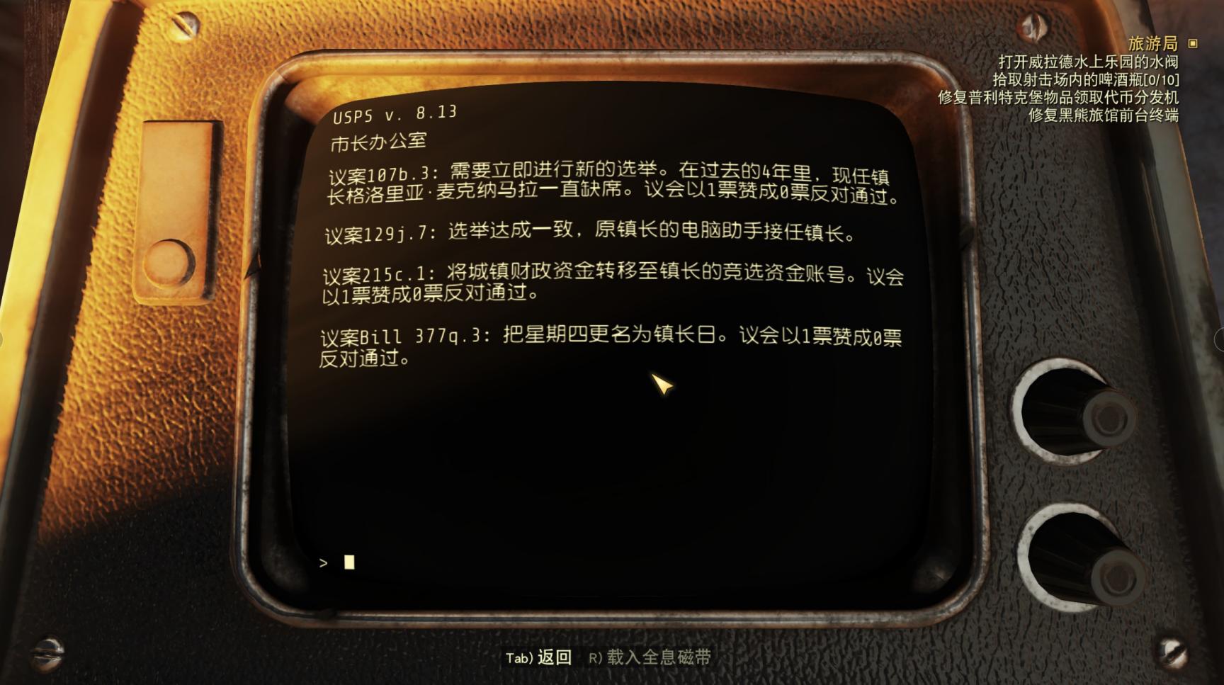 至于这个市长,只要细心的玩家看看格拉夫顿市的终端机就能得知,市长位置完全是这个机器人自封的,同意一票,反对零票。为什么?因为活人都死了嘛,细品之下不觉莞尔。