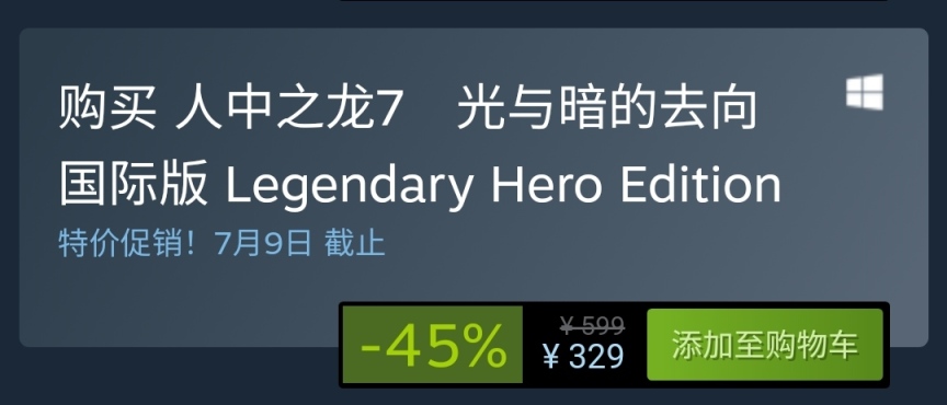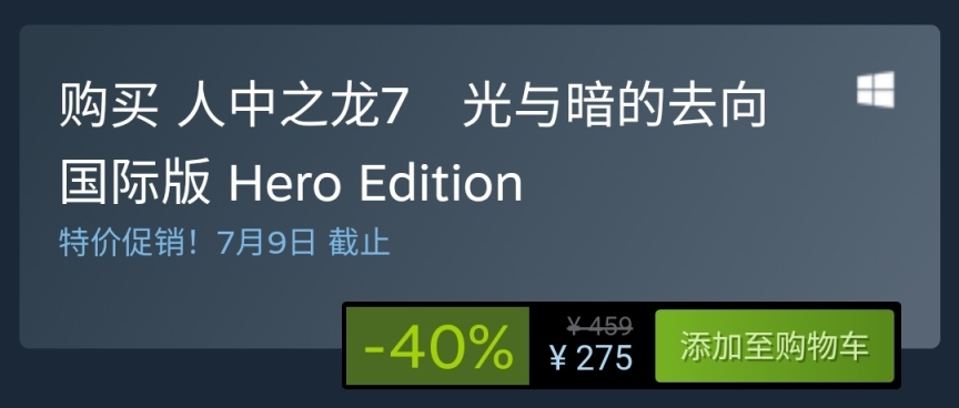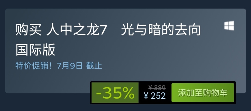 动作冒险游戏《如龙7:光与暗的去向》252元