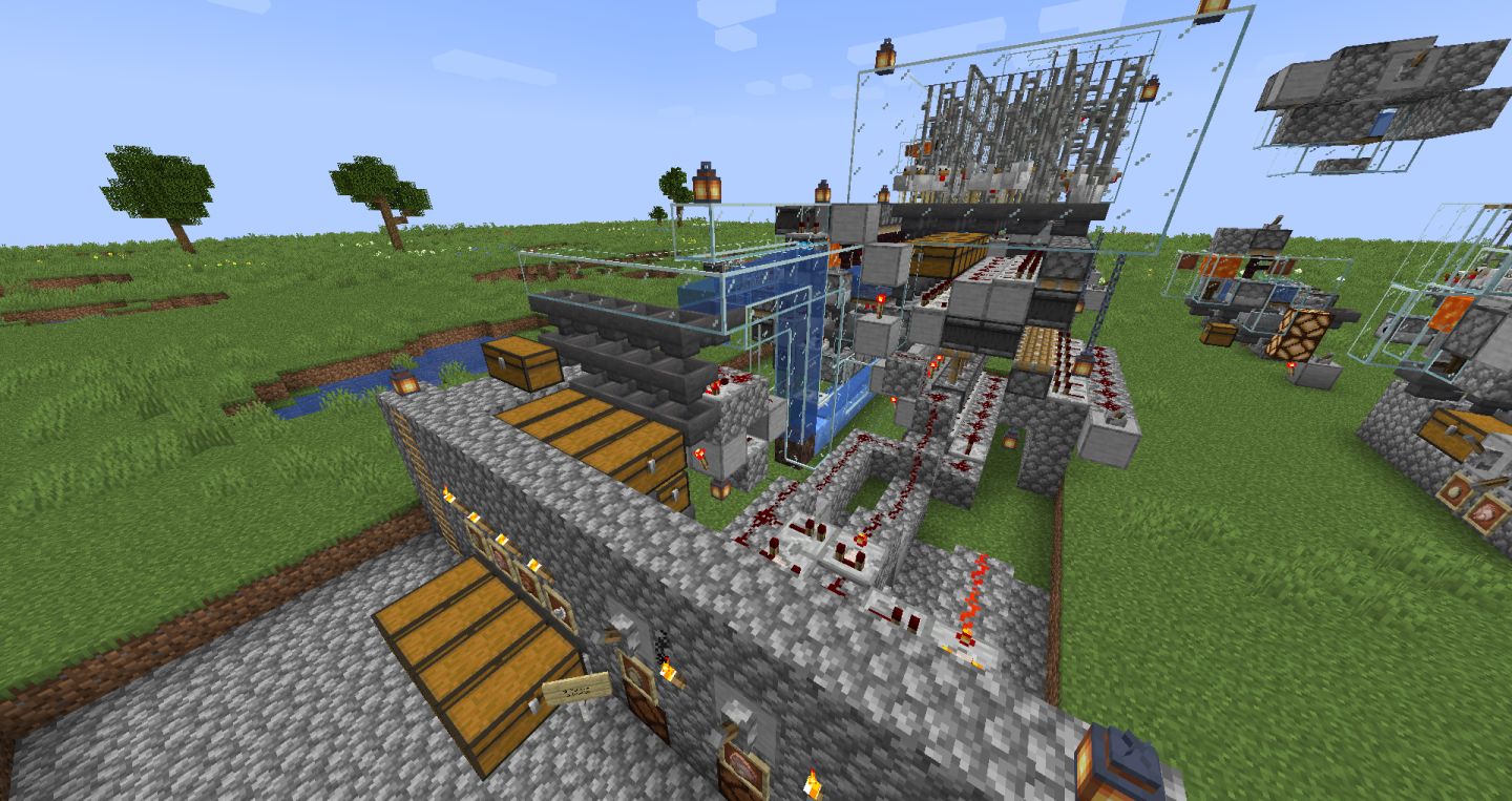 可以看到,产蛋区的下蛋、脉冲电路的激活发射鸡蛋、对小鸡的处理和收集三个部分,都不需要玩家直接参与,玩家建好后过一段时间过来查看箱子,拿取熟鸡肉吃即可。