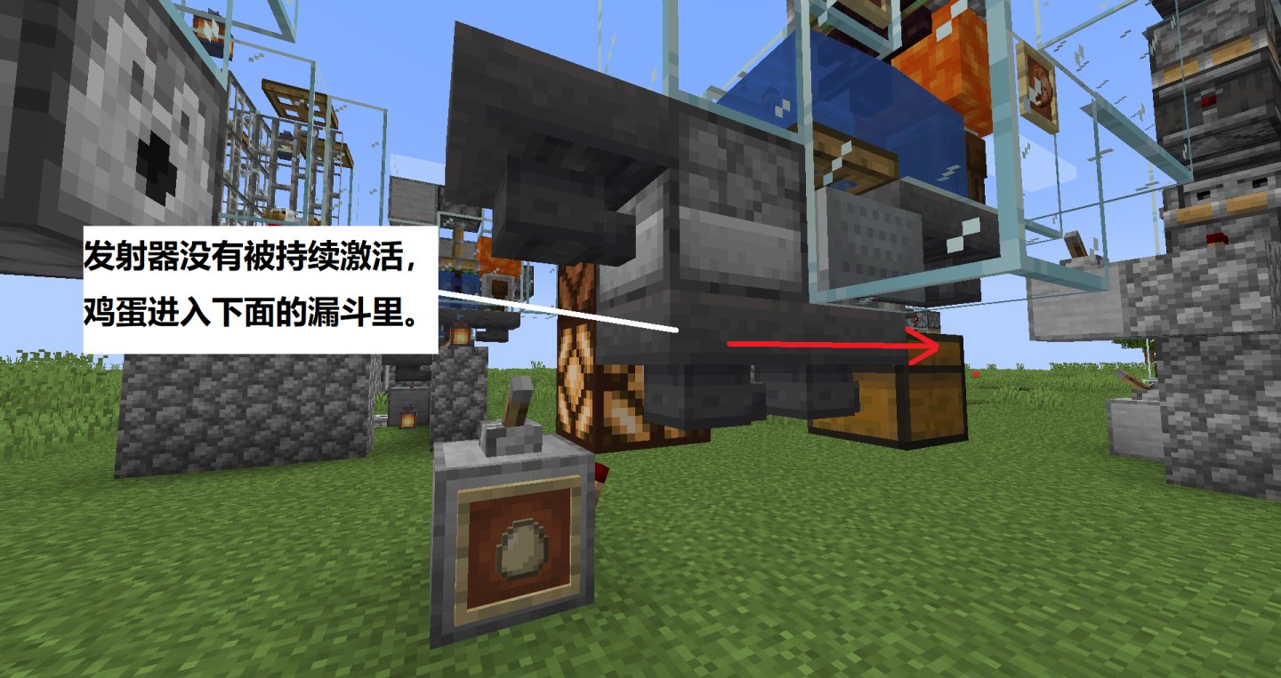 值得一提的是,以上差不多都是在一瞬间完成,然后线路熄灭,玩家看到的则是发射器发射了鸡蛋。