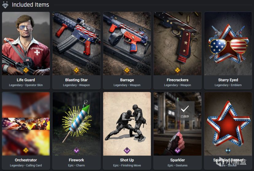 包含:特战兵萨拉、Krig 6曳光弹蓝图、AUG曳光弹蓝图等