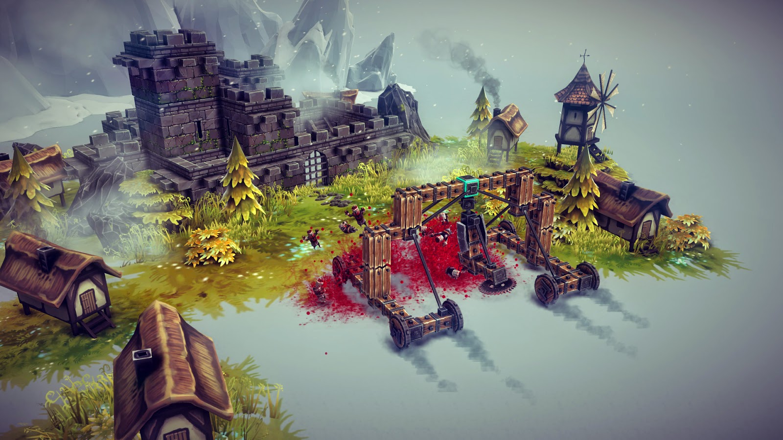 游戏在玩法上十分“简单”,需要大家自己设计建造攻城战车来进行战斗,可以充分发挥自己的想象力,但要遵循物理规则。自己造的车经常跑着跑着就散架了,创意工坊里有大量大佬做的mod可以用。另外场景也十分大气,战车所破坏之处特效令人舒适,小人被炸得漫天飞充满乐趣。