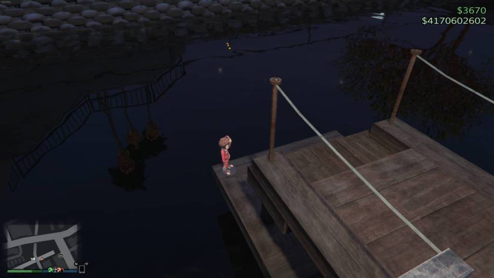 在靠近码头北侧的河边小屋的橡胶轮胎上放着一个手办。