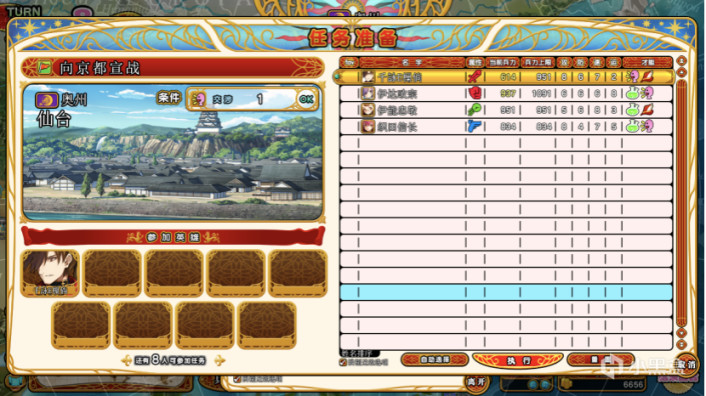 根据阵法来看,有些战姬适合短距离近战、有些则是远距离射击。比如本作的真·女主伊达政宗,可以放在前排咬人(真的是咬人),而织田信长似乎取材于历史上的火枪队,比较适合后排远距离偷家。当然还有不少中远距离辅助的战姬,包括卑弥呼的魔法治疗队、佩里的炮击队、哥伦布的远射队等等,且越到后期可使用的战姬就越多,而每次行动能携带的人数有限,因此如何有效运用全看玩家的战略头脑。