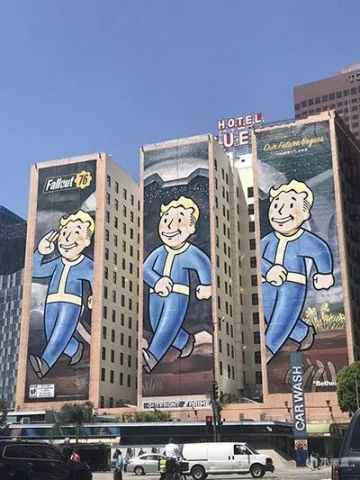 如果要说2018年E3最受期待的游戏之一,那我相信,一定绕不开辐射4的官方续作:辐射76.b社甚至包下了洛杉矶费格罗亚酒店的外墙,用来张贴辐射76的海报。