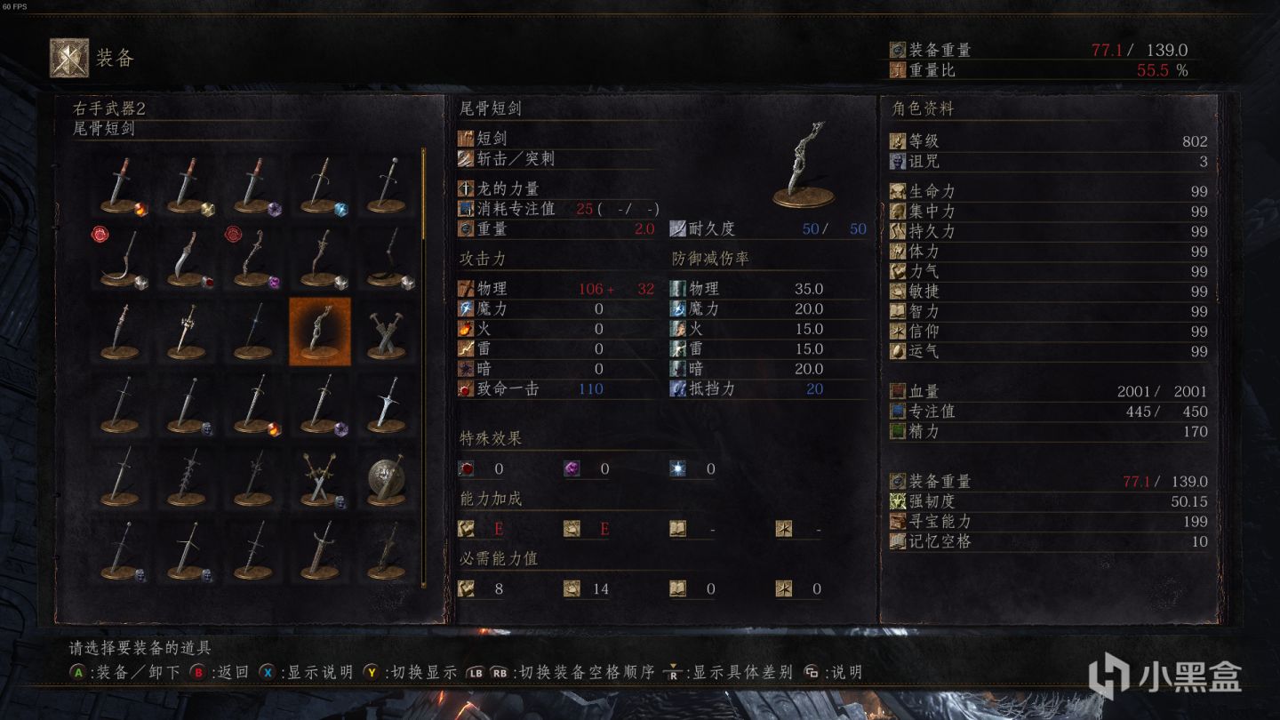 这把可以说是我的掌上明珠了。鸦短算是最长的短刀了,和直剑差不多长但是和短刀一样灵活,但是与长相对应的耗精也高,但是短刀这类武器本身耗精少,高一点影响不大。面板也比较高,很厉害的一把PVP定位武器。战技死角一击可以绕盾,也有高冲击力,且无法弹反。跑攻和轻击出手极快且长,打先手往往对面还没出手就挨揍。战技可以用来打后手。一把很强的PVP定位武器,极其推荐(抓滚和打先手能力极强)