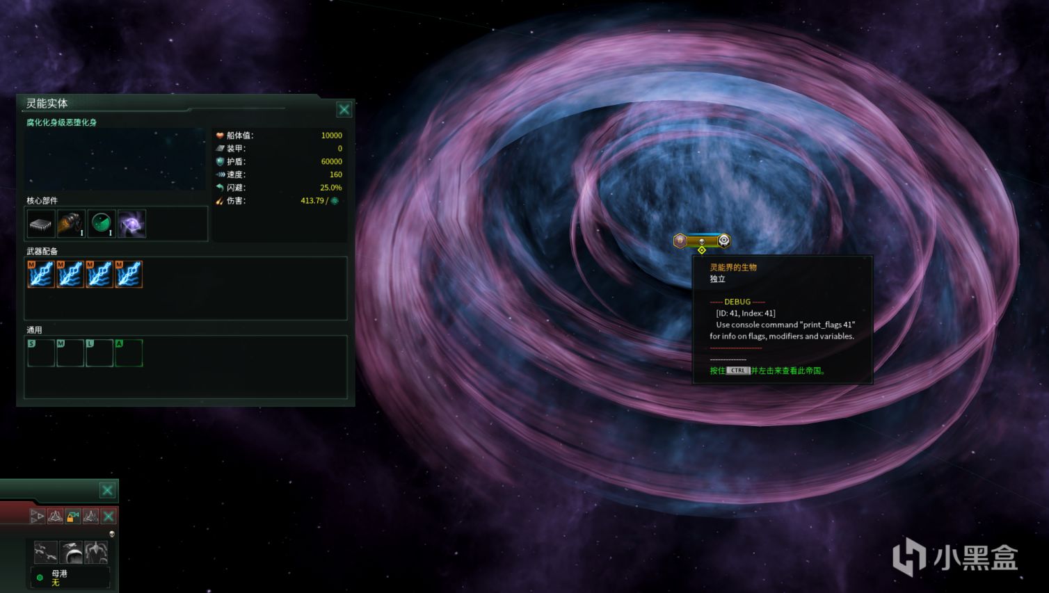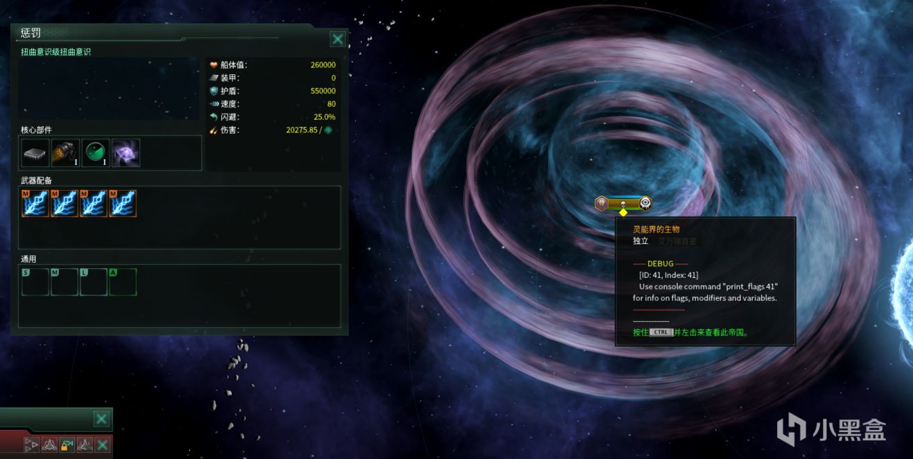在开启debugtooltip后,清算事件产生的扭曲意识,扭曲意识的国家ID与利维坦腐化灵体也显示的国家ID相同(甚至可以play过去),二者具有完全相同的武器配置,除了在自身固有属性加成及模型尺寸上有区别外,其他全部相同。
