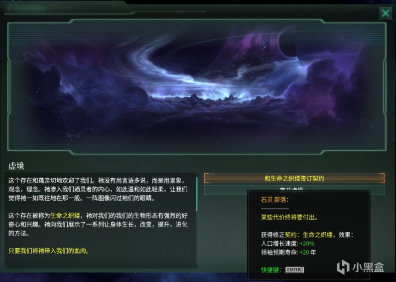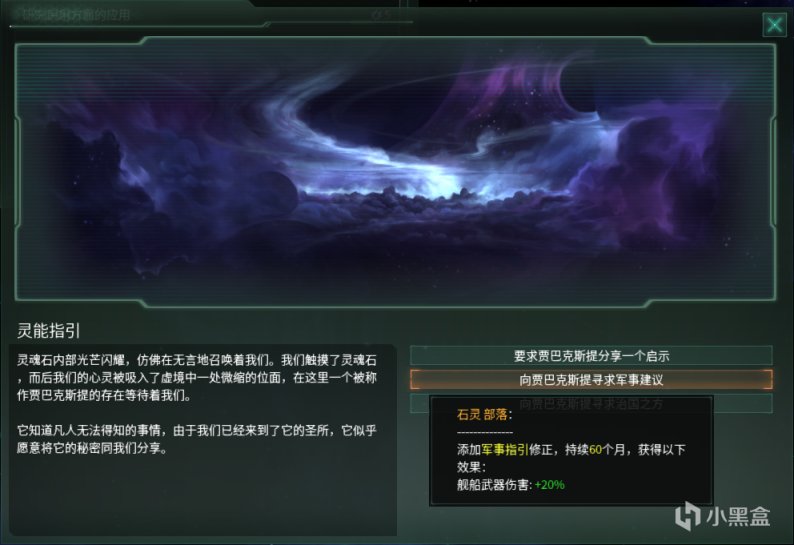 主动激活的效果可以让任意帝国进入虚境与“贾巴克斯提”进行交流以获取3个固定buff中的1个。