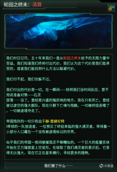 轮回之终末:清算事件不会像其他危机一般,触发星际间集体反应,不会有星系守护者产生,星海共同体也不会对此作出专门回应,但并不说明它的威力弱。在没有有效阻挡的情况下,扭曲意识会逐步将银河系中所有宜居星球全部转为虚境星球,导致整个银河系的灭亡。