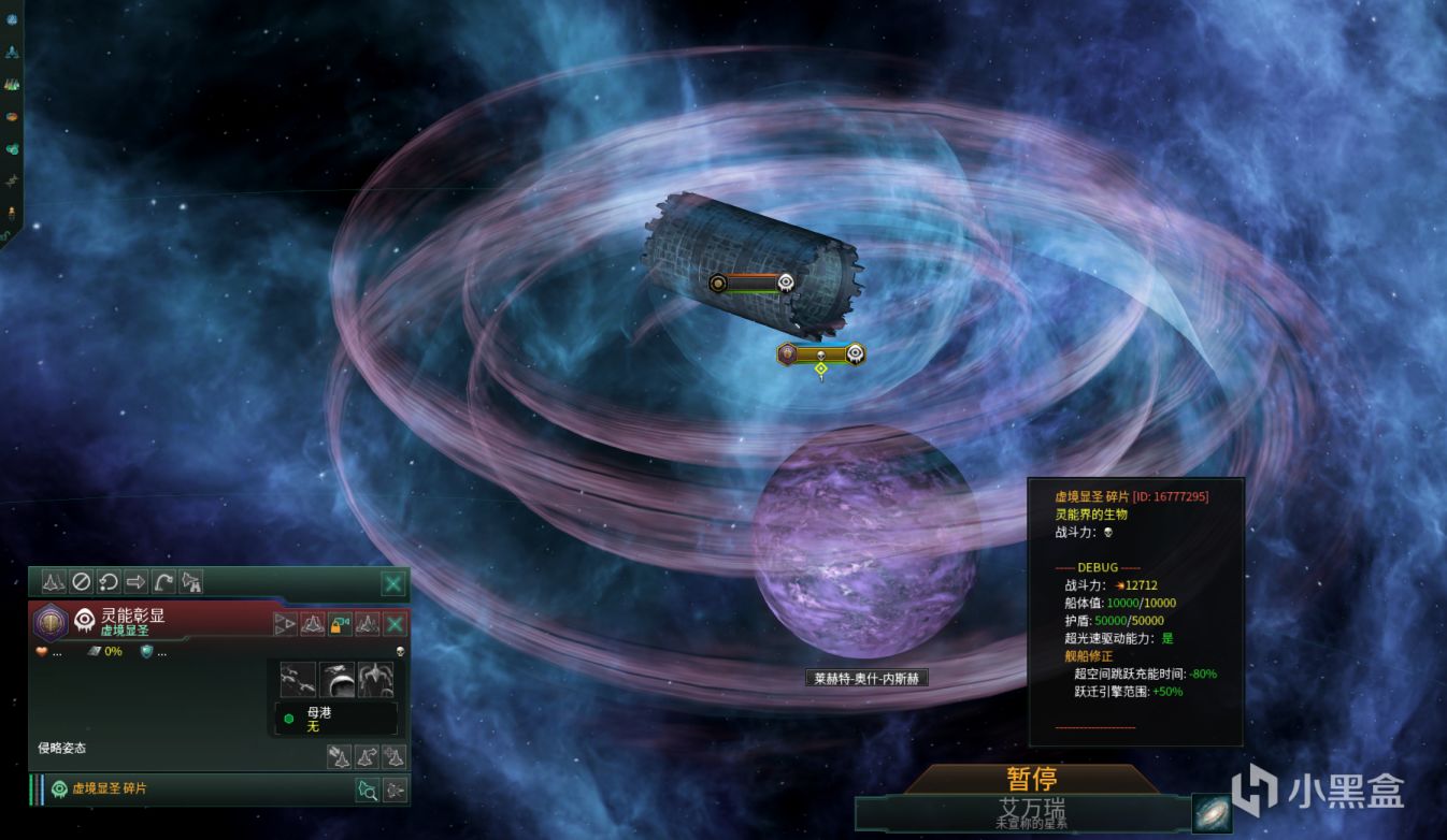 3.所有具有“虚境标记”修正的行星将变为虚境星球,轨道居住站将被摧毁并移除,环形世界将被变为“破损的环形世界”,人口全部丢失,陆军均被摧毁,行星上空出现敌对单位“虚境显圣”。