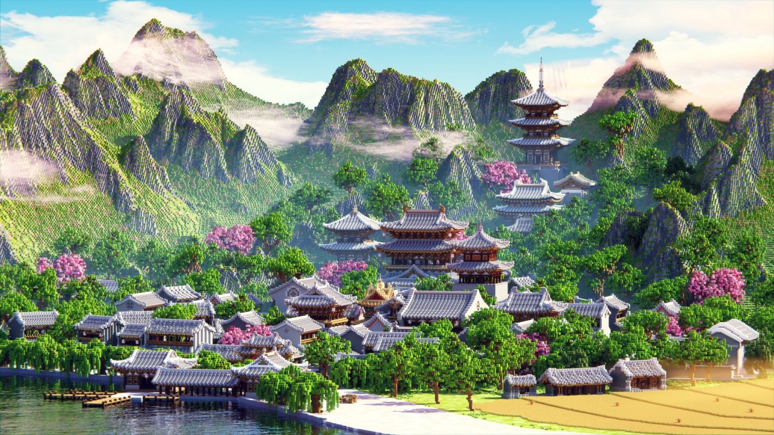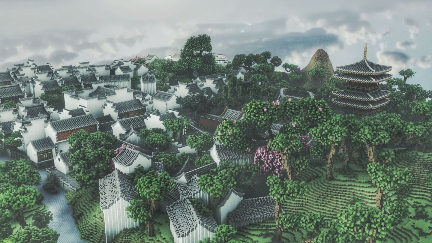 联机帖的封面,雕心画梦建筑团队的楷桦镇景观