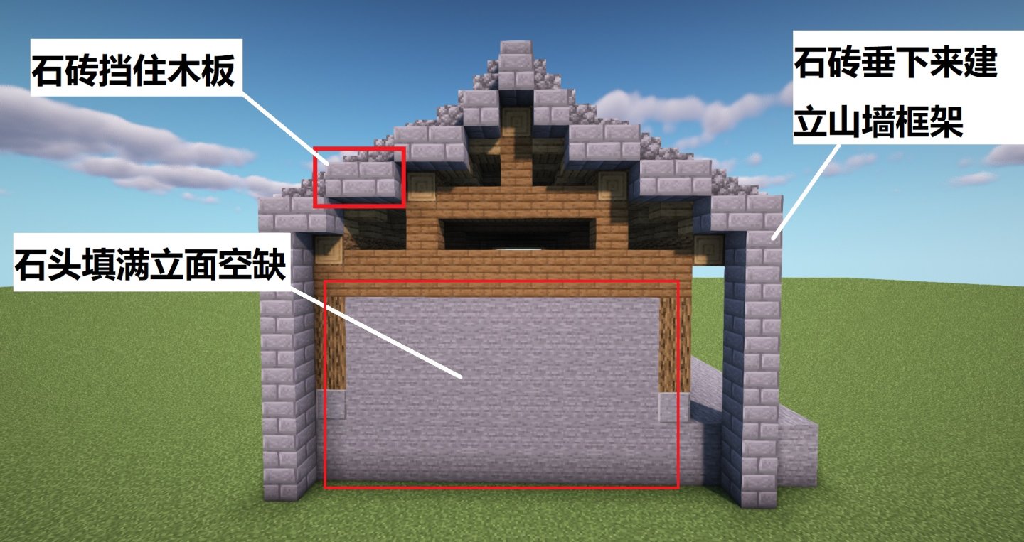在古代,硬山顶建筑属于偏向平民化的民居,六品以下官吏及平民住宅的正堂只能用悬山顶或硬山顶,因此硬山顶的建造不会太过繁琐和复杂,在Minecraft里也一样。