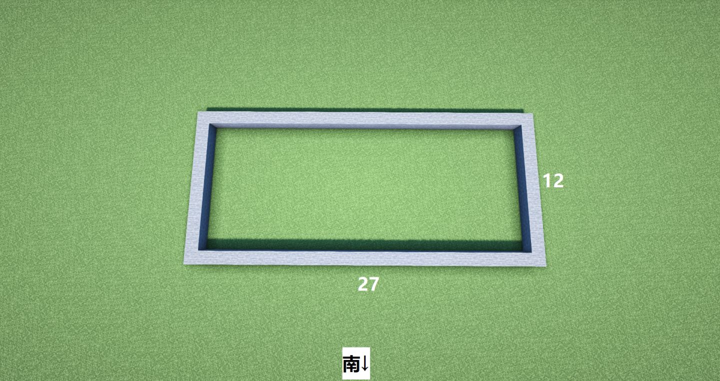 当然这个小小的硬山顶建筑不需要那么庞大,对于建造中式建筑,我们可以按照现实世界里从下到上的建设方式——首先规划台基,27X12的长宽后,将向阳的南方作为大门的位置。