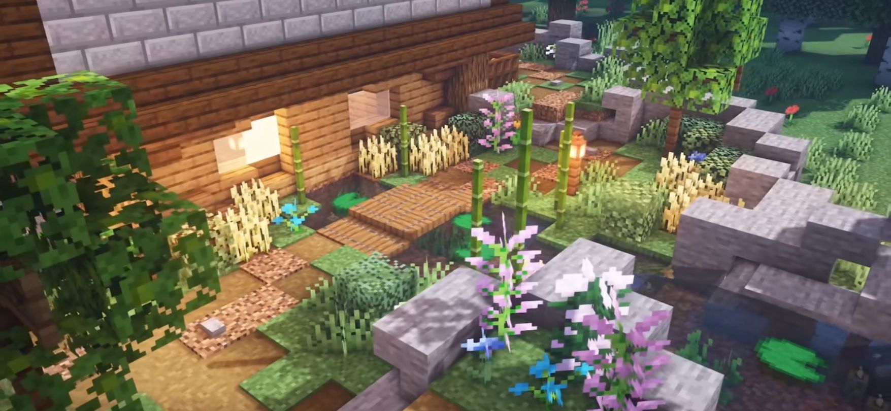后墙部分用石头和石砖填充搭配,并漏出橡木部分。