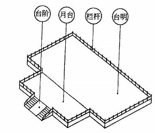 台基通常由台明、台阶、月台和栏杆四部分组成。