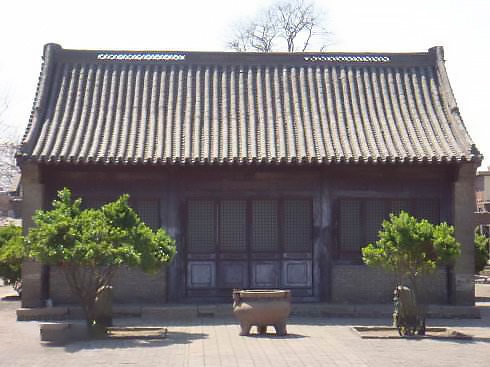 大式硬山建筑用于如宫殿、寺庙中的附属用房或配房,又有官式硬山之称。有带斗拱和不带斗拱两种做法,与小式硬山建筑相比有油漆彩画(颜色丰富)和青筒瓦,有设吻兽装饰。