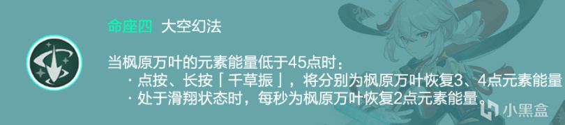 4命之前可能带个天空之刃这样的充能武器玩法也是可以玩的,但4命后就完全不需要了,all in精通即可,把伤害打到极致。但矛盾也在于此。即使带充能武器,万叶的伤害也已经够了,精通武器更多地是锦上添花。那么这个命座就显得不是很有必要。