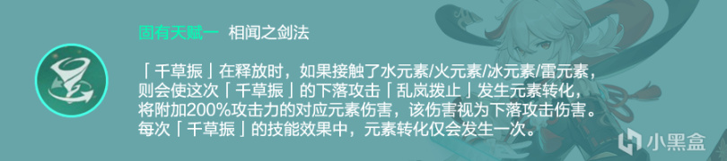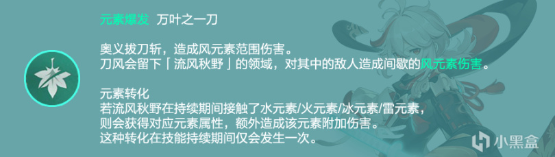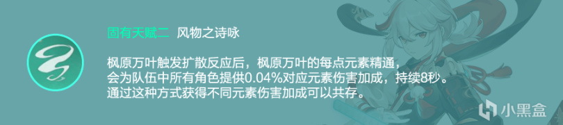 万叶能触发扩散的攻击是一定要触发扩散的,不然亏太多伤害。这个固有天赋就配合了万叶的特性,进一步加强了触发扩散的能力。只要触发这个天赋,那么本次乱岚拨止就是必定触发扩散的。强化了输出能力。
