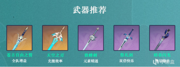 ④天空之刃,如果你充能不够,也是可以选用的,说实话万叶配天空的特效是真的好看。