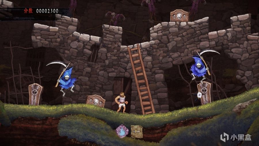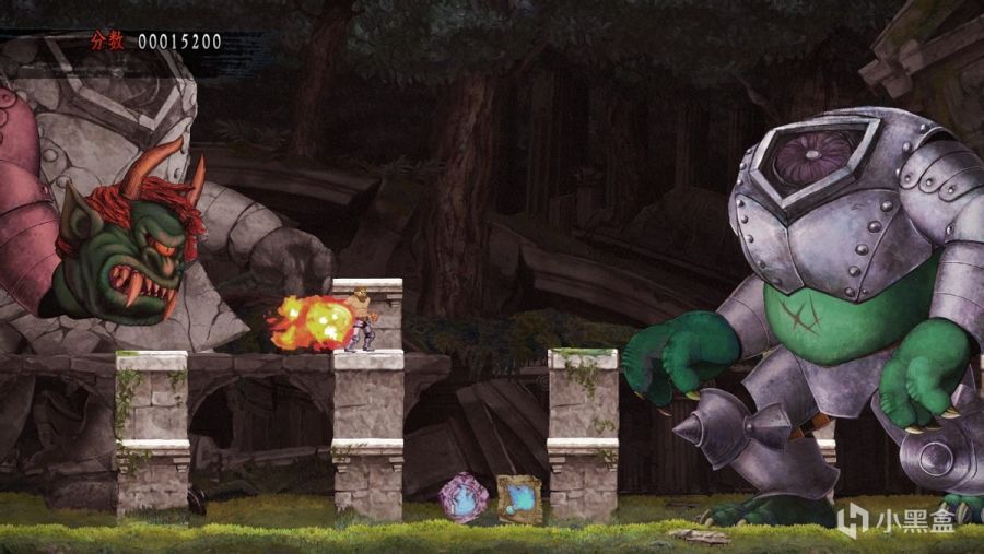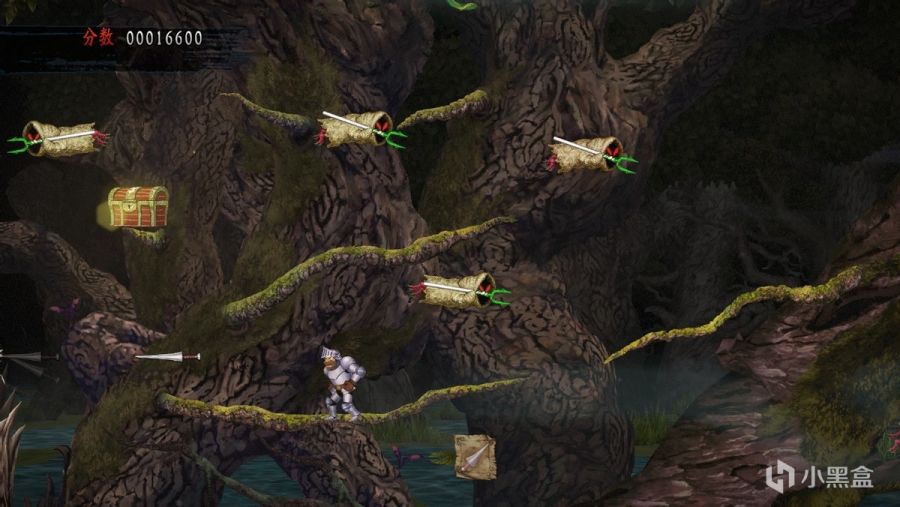 有了之前的经验,我也不再有不切实际的幻想,非要和自己较劲在高难度中展现什么行云流水的操作,老老实实的成为了一名“骑士侍从”。逃避虽可耻但有用,虽然我还是很手残的让亚瑟各种掉坑里摔死、掉水里淹死、被怪碰死,该变骷髅还是毅然决然地变骷髅,但至少游戏体验好了不少。在本作中人海战术非常可行,咱们用无数个亚瑟硬是给他堆过去,长枪所指之处,无论是什么样的BOSS都必然会倒在我们正义的投掷之下,能看看后面的关卡长什么样的同时也获得了足够的成就感。