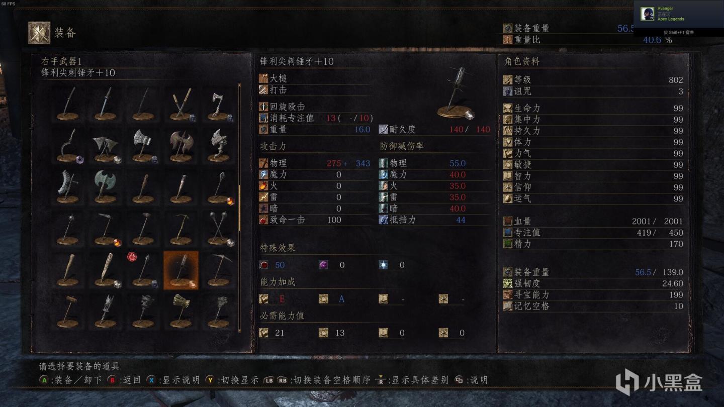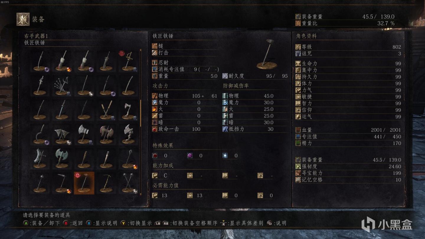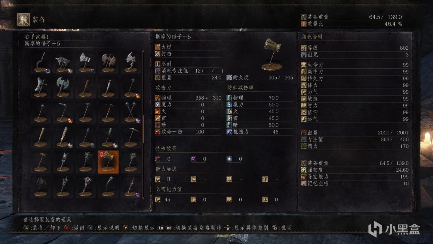这把锤子就没有什么特殊的点,不可质变,但是可以附魔。它在攻击上毫无特点,极其平庸也无法靠面板吃饭,但是它只要背着就可以加10%火抗及10%魔抗,这是它的亮点了。这玩意具体有啥用,大概就是99重量的我喜欢背着加点抗伤吧,淌岩浆池也不错但是有它的时候也不用进岩浆了。没什么用,适用PVE吧,一个防具,不推荐