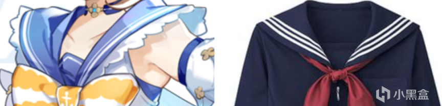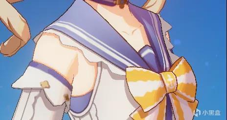 闪耀协奏与海风之梦不同之处在于闪耀协奏更加偏向于可爱,这与海风之梦的优雅形成了互补的关系。它的上部采用的是水手服的样式,而下面的内部是接近于死库水的泳衣,外部用了裙子将其包围起来。将夏日不同元素相结合,最后得到了一套全新的外观。