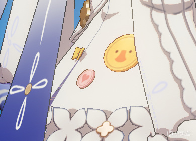 顺着后背继续向下,其实在后方的裙子上还有这小黄鸭、粉色爱心和蝴蝶结小装饰,如果不仔细看,想必也会有不少的人忽视掉这一点吧。不过这几件装饰确将闪耀协奏后视的可爱元素轻而易举地点化出来了。可以说,这几件装饰其实是不可缺少的东西。