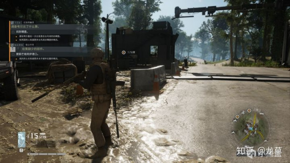本作中的场景对游戏本身起到的作用非常薄弱,哪怕我用《幽灵行动荒野》的地图,稍微改改建筑风格也能完全套用在本作的剧情和系统上。虽然本作发挥了育碧美工们强大的实力,也打造了多种地形生态,看似很丰富,但其实并没有带来任何区别,因为这些地形生态,天气变化,和整个游戏没有任何的联系。就如同《最终幻想15》一样,现在是下雪和下雨对玩家来说有除了视觉以外的区别吗?没有。但《最终幻想15》是个ARPG,本作是款战术射击游戏,天气与地形对于战术射击类游戏本应该具有至玩法层面的巨大影响,但在本作,这些通通不存在。看看荒野之息,火山的烤肉特性,耐火服,沙漠的炎热,鸟人村的高处不胜寒等等,不同的区域有着不同的生态特点,而这种特点会对游戏产生明显的影响。包括天气系统也是同理。再说到环境叙事,为什么开头我说换成荒野的地图也没问题?这就是因为环境叙事在本作的缺席导致的。我不会说把ff15的地图换到本作来也能适用,不会说把美末2的地图换到本作,因为这些作品的环境与游戏剧情,游戏关卡有着高度绑定,比如ff15里的特尔帕爪痕,你放在断点里就完全无法解释,风格也不相符。断点的环境是很漂亮,但也止步于此,玩家就如同这个世界的一个过客,匆匆的跑路,刷着一模一样的据点,捡着如同垃圾一样的装备,最后通关游戏。荒野之息里是怎么做的?开局玩家就能看到的盘旋在空中的鸟神兽和海拉鲁城堡营造了神秘感的同时也叙述着这个世界发生的故事,而击败神兽以后发射激光的神兽则是场景对于剧情推动做出的反映。