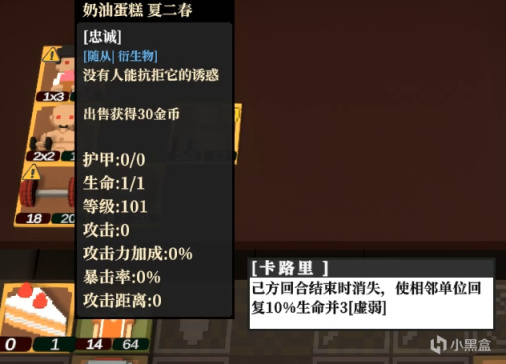 吃掉蛋糕的话,可以回10%复生命值,但是会叠加3层【虚弱】debuff,也就是让攻击力在这回合减3点。