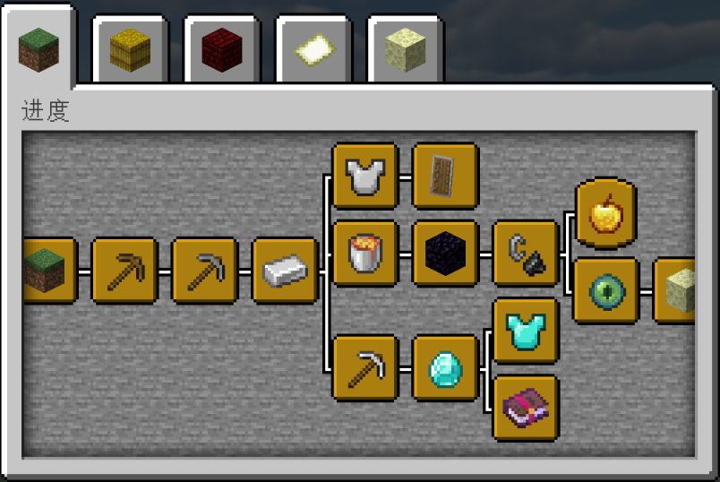 “Minecraft”标签中的进度树