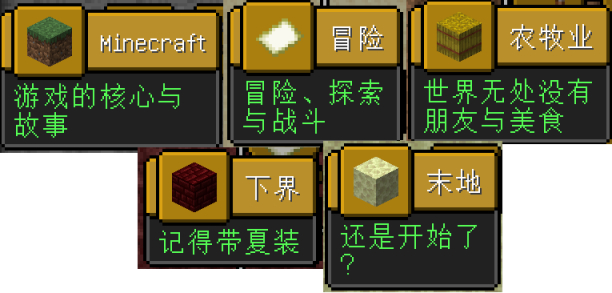 Java版的五个主要成就标签,每一个都有其所对应的成就树分支枝干