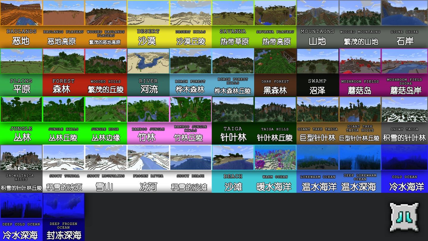 挑战性成就,需要到访原版42个生物群系。
